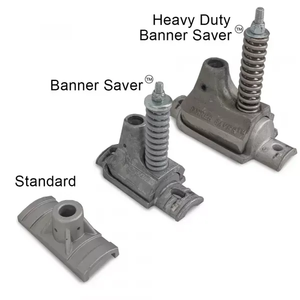 BannerSaver™: These premium brackets are spring loaded, reducing stress on the light pole, and enabling banners to last longer. This hardware can be installed on round light poles.