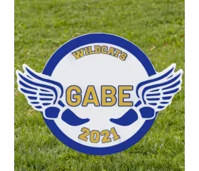 Show off your favorite all-star softball player and cheer them to victory this season with these personalized softball yard signs. These high-quality signs are made from corrugated plastic material, which is weather-resistant and UV-protected for indoor and outdoor display. Whether it’s raining, windy, snowy, or sunny, the elements will not ruin the sign. The personalized design is also printed using a digital method, which results in striking colors that will not scratch, peel, or fade off the sign. The durability of the sign material and the print allow this sign to be set up for months. Customize the sign by adding the name of a player, the name of their high school team, the school year, and their team number onto the softball yard sign. You can also choose which colors you want for the text and the outline to match their team or favorite colors. The included H stake simply installs into the ground and the sign is attached through the flutes between the sign layers. Showcase a softball athlete with these well-made softball shaped yard signs.