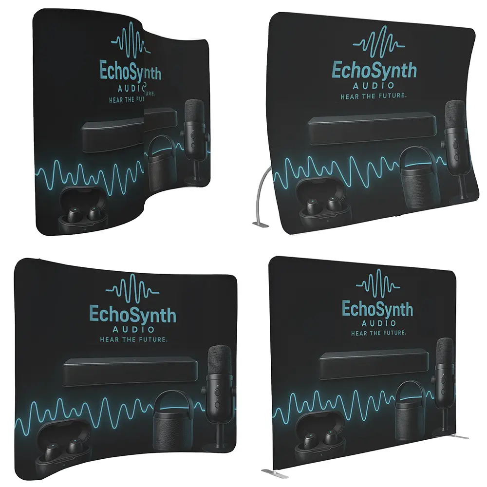 Showcase your brand and bring extra attention to your business with a stretch fabric backdrop. These stretch walls are perfect for trade shows and events, and are available in four styles. Choose between straight, curved, vertical curved, and wave shapes. All options are large and instantly noticeable to passersby.